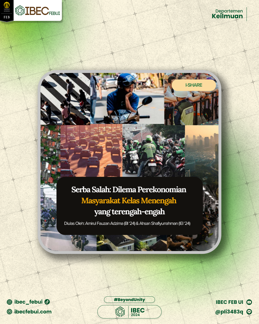 IBEC FEB UI merupakan organisasi yang menghimpun jurusan Ilmu Ekonomi Islam dan Bisnis Islam FEB UI.