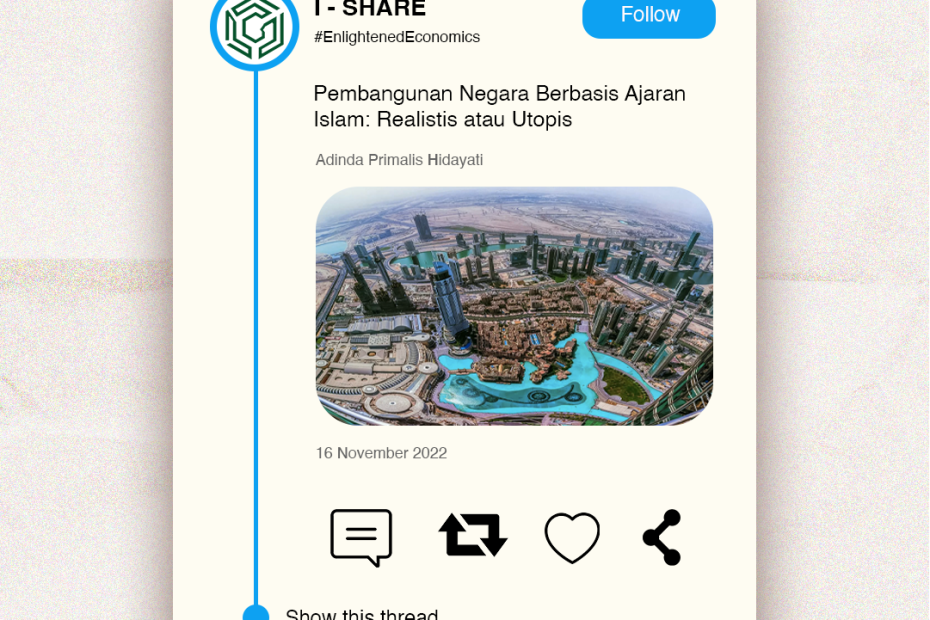 Oleh: Adinda Primalis Hidayati (Bisnis Islam 2021), Staf Departemen Kajian IBEC FEB UI 2022 Indonesia telah berhasil menempati peringkat ke-16 negara dengan jumlah Produk Domestik Bruto (PDB) terbesar di dunia. Hal ini membuat Indonesia dapat memasuki perkumpulan 20 negara dengan PDB yang besar. Perkumpulan ini… Read More »Pembangunan Negara Berbasis Islam: Realistis atau Utopis?