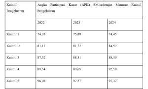 Tabel 1. Data Angka Partisipasi Kasar SMA Sederajat Menurut Kuintil Pengeluaran
