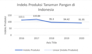 Pada periode 2017-2020, indeks produksi tanaman pangan memiliki kecenderungan menurun. Indeks produksi tanaman pangan tahun 2020 sebesar 91,95 atau turun sebesar 2,47 poin dibandingkan tahun 2019 (Badan Pusat Statistik, 2020).