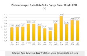 Berdasarkan laman data media pusat data dari Bank Indonesia, pada tahun ini bank sentral menaikkan suku bunga acuan, BI 7-Days Reverse Repo Rate (BI7DRR) dalam Rapat Dewan Gubernur (RDG) BI April 2024. Bank sentral menggerek suku bunga acuan sebesar 25 basis poin (bps) sehingga suku bunga acuan sekarang bergerak ke level 6,25%. Menurut wakil Direktur Institute for Development, kenaikan suku bunga acuan menjadi sinyal minimnya harapan penurunan suku bunga di tahun ini sehingga menyebabkan pertumbuhan kredit akan melambat. Bahkan pertumbuhan ekonomi tahun ini diproyeksikan akan mencapai 4,8% lebih rendah dari target pemerintah dalam asumsi dasar ekonomi makro 5,2% pada tahun 2024. Namun, Direktur Utama PT Bank Tabungan Negara (Persero) Tbk, menyatakan bahwa KPR tidak akan terpengaruh oleh kenaikan suku bunga acuan bank sentral, terutama untuk KPR subsidi yang bunganya ditanggung pemerintah. Meskipun begitu, dampak kenaikan suku bunga acuan bank sentral tidak menutup kemungkinan pihak bank akan tetap menaikkan bunga KPR terhadap nasabah KPR yang non subsidi walaupun saat ini belum ada rencana menaikkan KPR, karena pihak bank memerlukan banyak pertimbangan untuk bisa memutuskan kenaikan bunga KPR. Jika dilihat data dari 2 tahun terakhir, walaupun terdampak kenaikan suku bunga acuan yang cukup besar oleh bank sentral, namun pertumbuhan KPR secara nasional tetap bagus, sehingga dari pihak bank tetap optimis terhadap pertumbuhan demand KPR tahun ini.